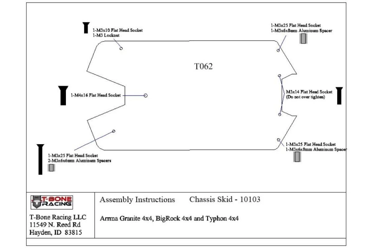 10103 | T-Bone Racing Black ARRMA Kraton 4S, Big Rock 3S, Typhon 3S & Senton 3S Chassis Skid Plate