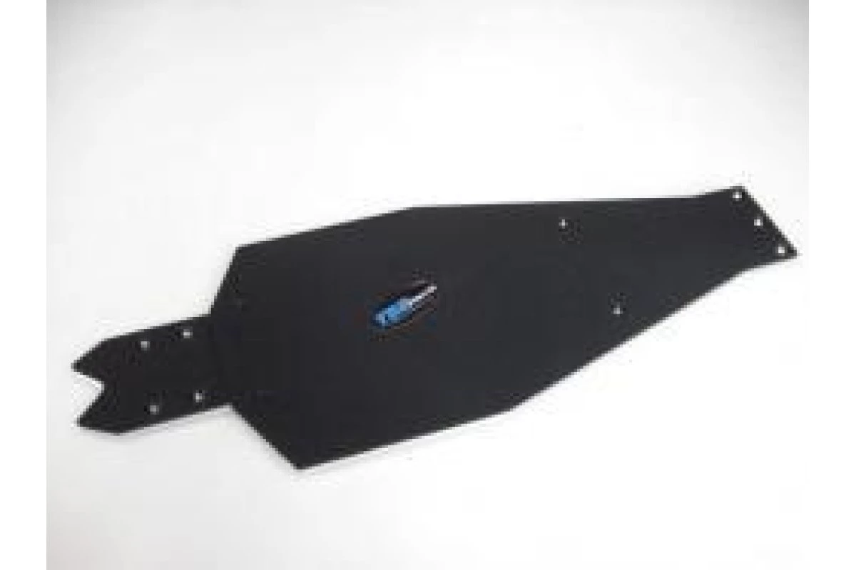 T-Bone Racing FLM Chassis Skid for the FLM Rustler extended aluminum chassis protects your chassis from being gouged and scratched. It mounts with seven longer screws. Comes with their DSr rear skid and can also be used with their TBR and NM rear bumpers. These skids are made to work with T-Bone Racing Basher and Thrasher front bumpers.Note: Does not fit the stock Rustler Chassis.Made of Delrin.