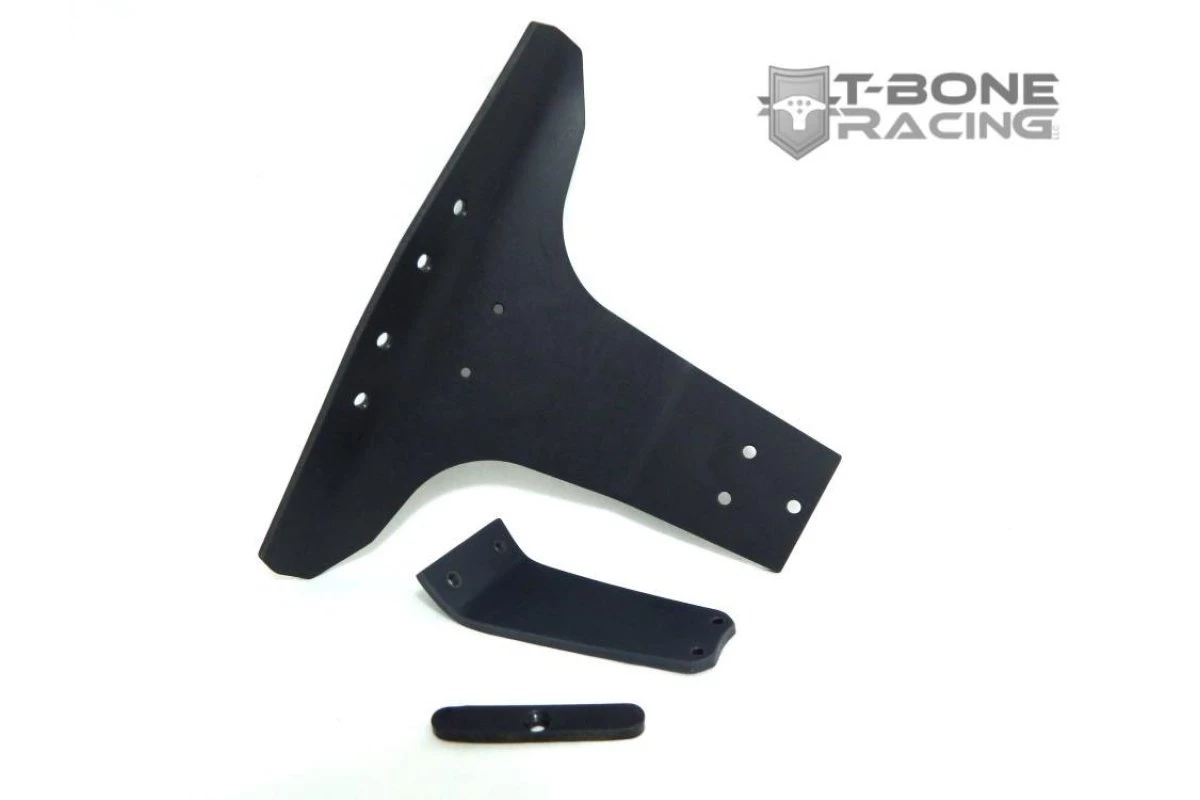 This T-Bone Racing SC Basher front bumper mounts under the chassis and replaces the stock bumper and mounting hardware.A nylon brace mounts on the bumper and extends to the differential, shock tower or bulkhead.