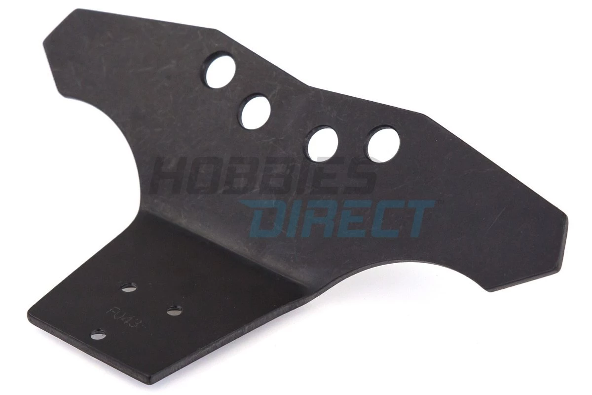 Bumper mounts under the chassis. A .093″ nylon brace fits between bumper and chassis.Note: Stock bumper and skid are to remain on your truck. The r10 loses the privious Delrin Rod and hasa nylon brace in its place.
